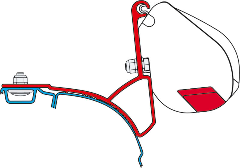 Kit adaptadores para montaje de toldo F35 en VW T5 con techo estándar.
