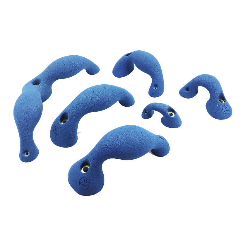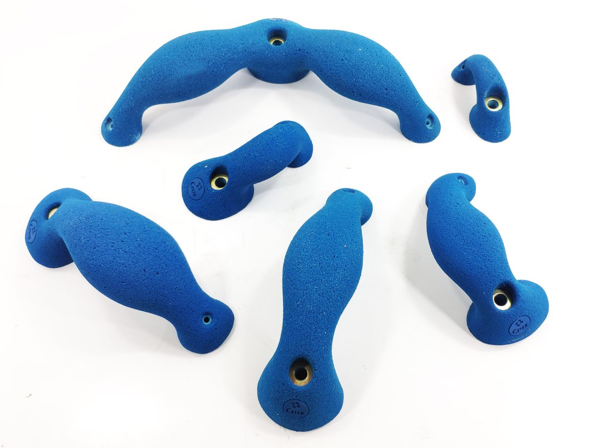 El set más comercial del catálogo de Crux. Seis presas de agarre confortable, perfectas para