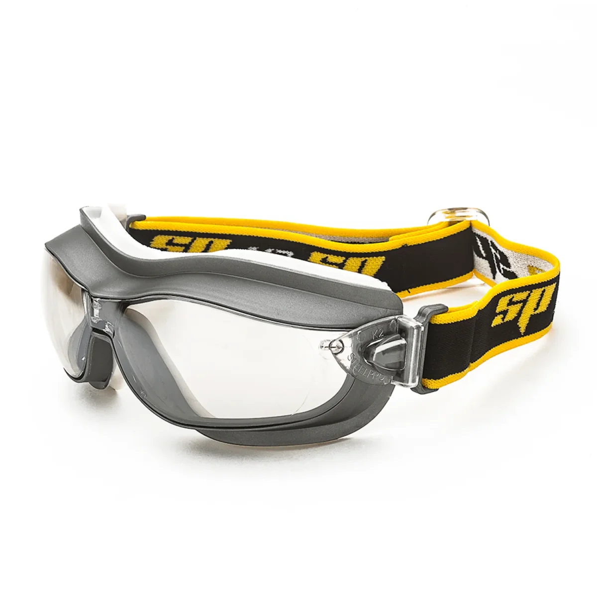 Antiparra de policarbonato con sello de silicona de PVC hipoalergénico, marco de nylon y strap ajustable al rostro. Su estructura compacta y ligera es extremadamente cómoda, lo que permite un buen sellado y ajuste al rostro. Tiene ventilación para micropartículas, permitiendo la respiración de la antiparra, sin que afecte su desempeño y seguridad, manteniendo sus propiedades Anti-empaño y Anti-polvo. Certificada bajo norma ANSI Z87.1 2010 y registrada en el ISP.