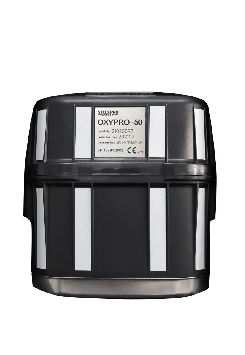 El equipo auto rescatador OXYPRO-50 de circuito cerrado, es un dispositivo portátil diseñado para situaciones de emergencia por deficiencia de oxígeno (niveles menores a 19,5% Vol) o por presencia de gases tóxicos, generando O2 (Oxígeno) para garantizar una respiración adecuada y la autonomía de uso en labores de escape de 50 minutos en actividad. Registrado en el ISP