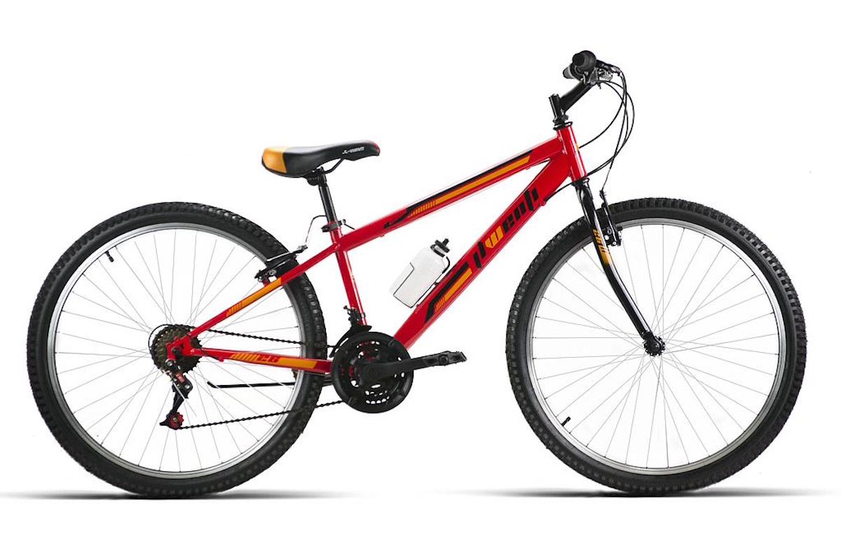 - B300 MTB: Bicicleta 26″ con barra alta tipo MTB, cuadro de acero ECO y 18 velocidades por fricción. V‑brake de aluminio, manetas de aluminio, ruedas de aluminio interior negro y potencia 25.4. Colores: Amarillo, Rojo y Verde. Robusta para ciudad y caminos suaves