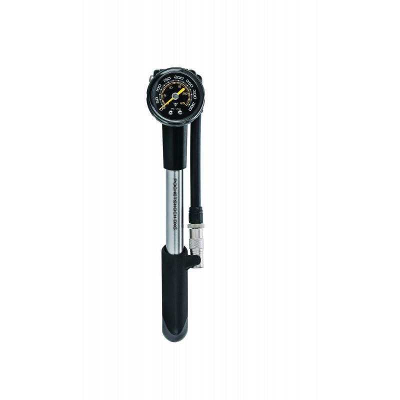 Bomba para la horquilla muy precisa con indicador de presión de fácil lectura, botón para liberar aire y dispone también del conector Pressure Rite para llegar a la presión deseada con mayor facilidad y evitar perdidas de aire el desconectar. La Manguera muy flexible elimina estrés de la válvula y facilita el inflado.
