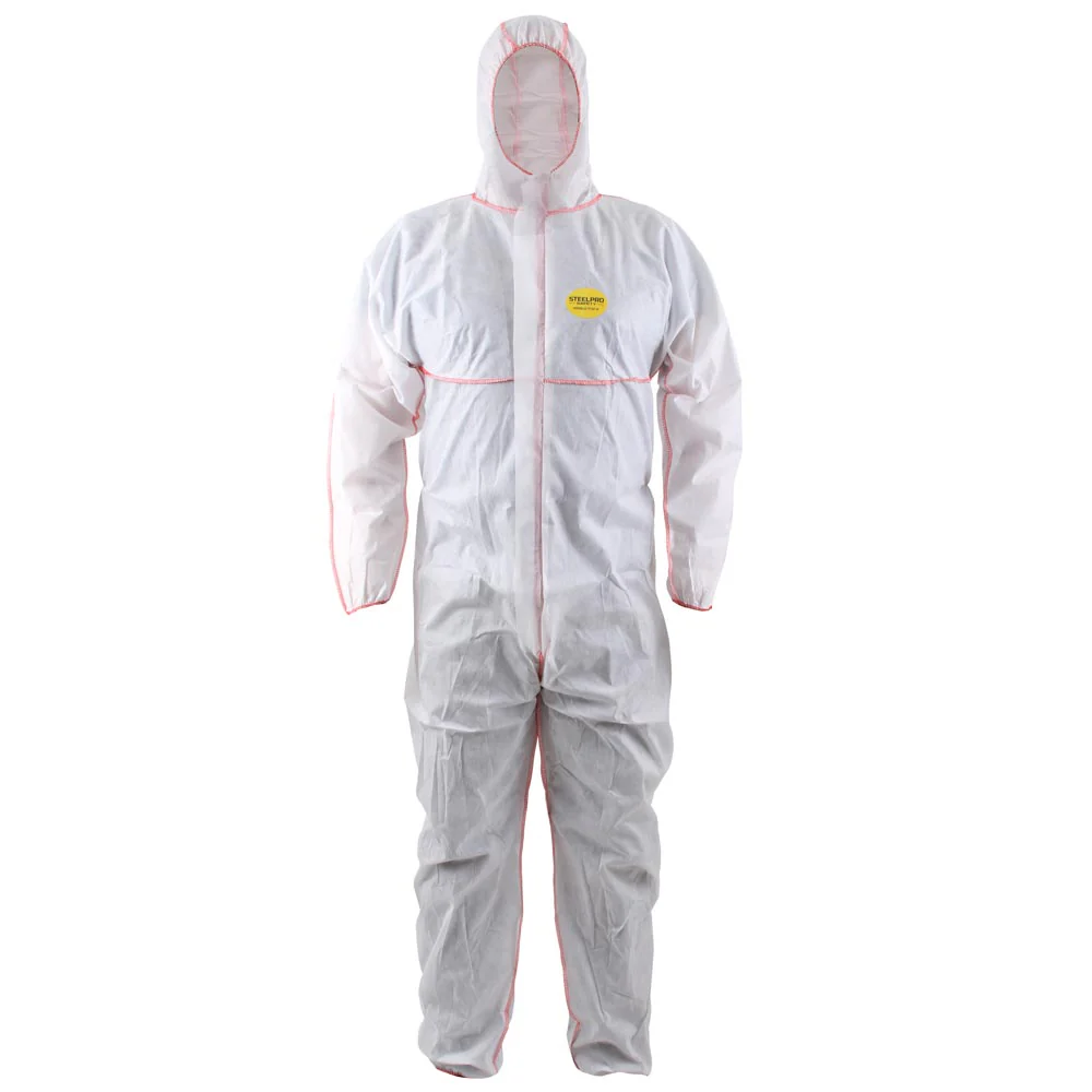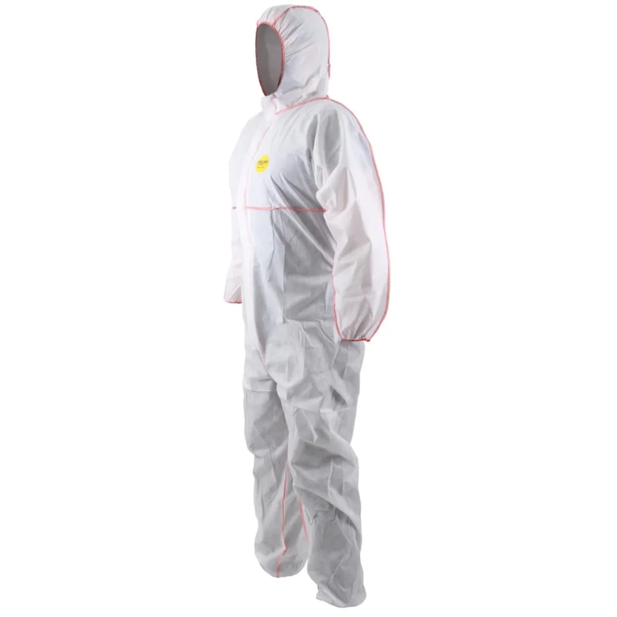 Confección en tela SMS: El buzo está confeccionado en tela SMS (Spunbond Meltblown Spunbond), que combina capas de polipropileno hilado y fundido para proporcionar una excelente barrera contra partículas contaminantes y líquidos.