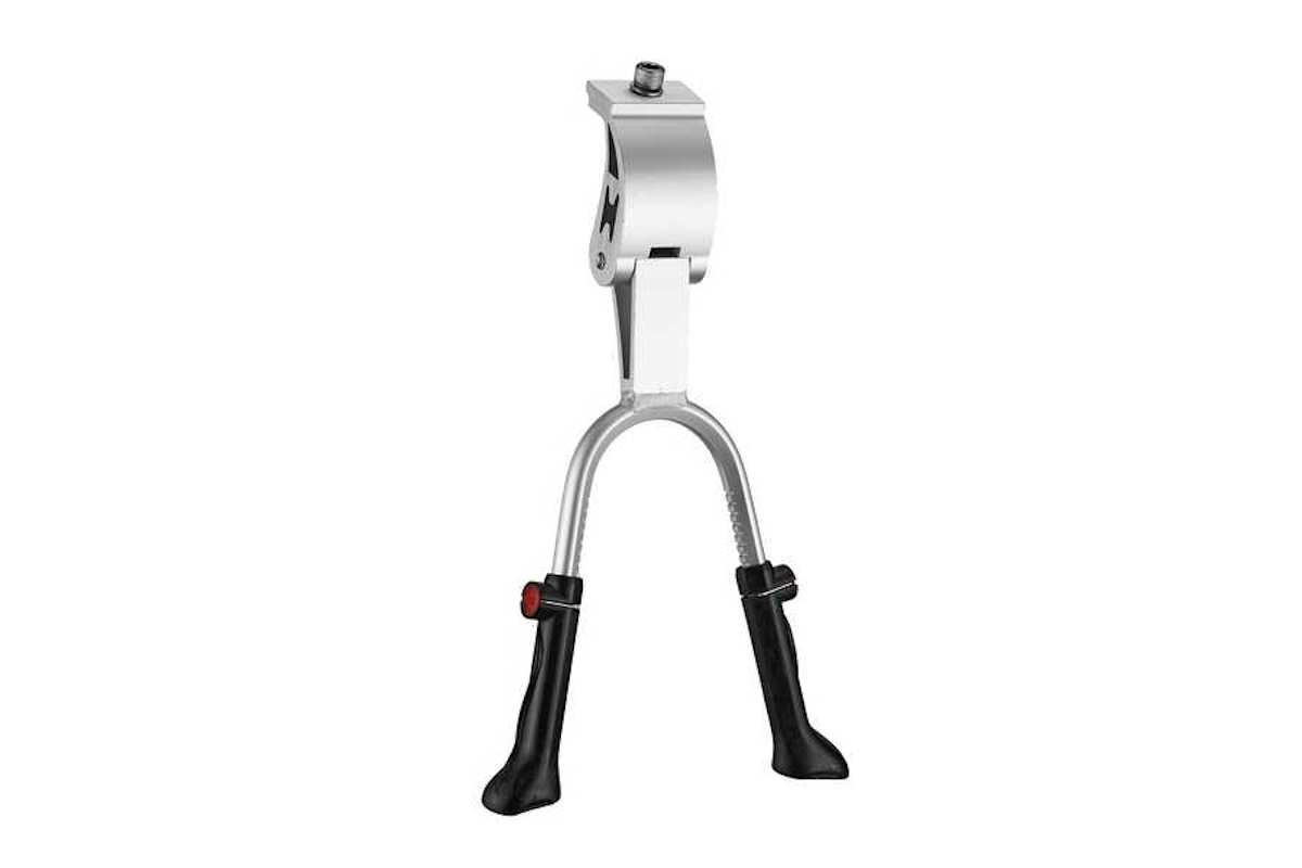 Disponible en color negro y color plata, el caballete doble central KS-35 es una solución excelente para quienes buscan una pata de cabra central fiable para viajes, cicloturismo o desplazamientos diarios.