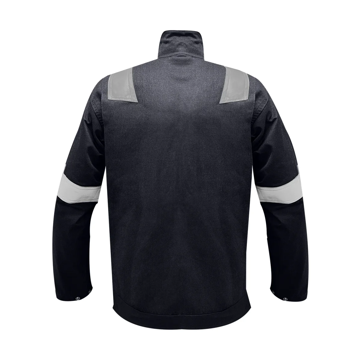 La chaqueta tiene un color azul, lo que facilita su identificación y distinción en el entorno de trabajo. Además, cuenta con cintas reflectivas de 2″ en las mangas, lo que mejora la visibilidad del usuario en condiciones de poca luz, aumentando así la seguridad en el lugar de trabajo.