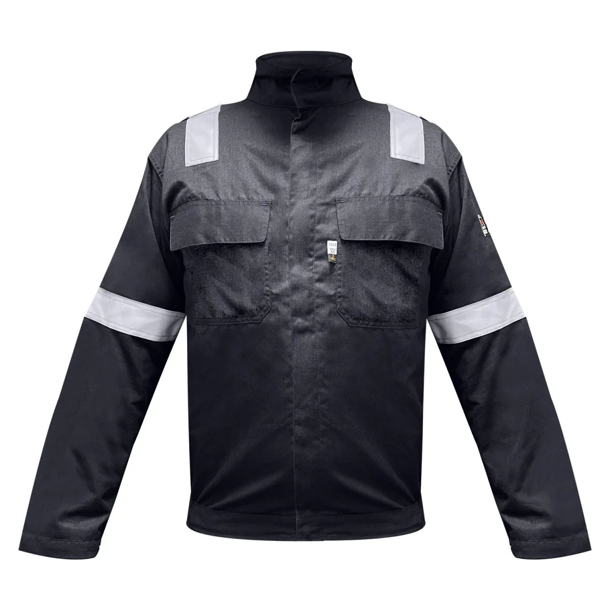 El cierre frontal de la chaqueta se realiza mediante una cremallera frontal y botones a presión FR (resistentes al fuego), lo que garantiza un cierre seguro y resistente al fuego.
