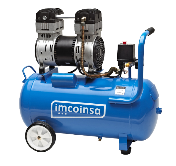 Compresores silenciosos equipados con motor de inducción de bajas revoluciones (1.450 r.p.m.). Bajo nivel sonoro y mayor vida útil. Refrigeración sin aceite, facilitando las labores de transporte y libres de mantenimiento.