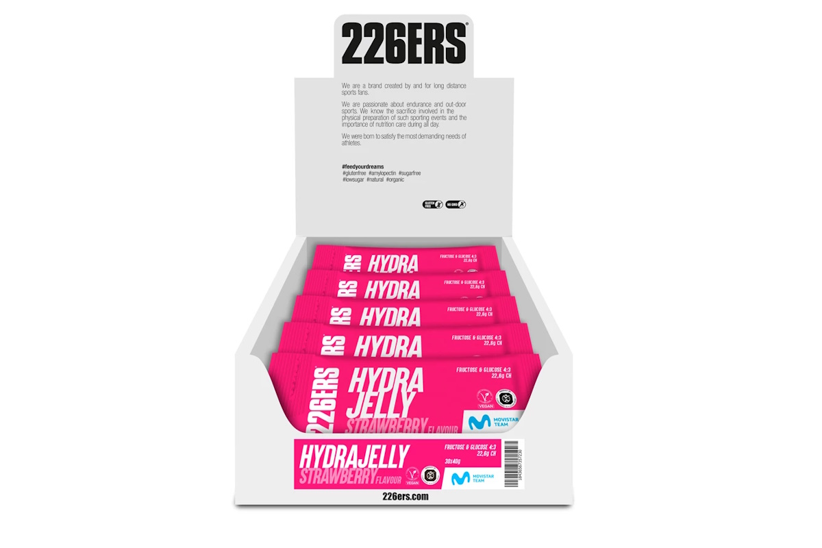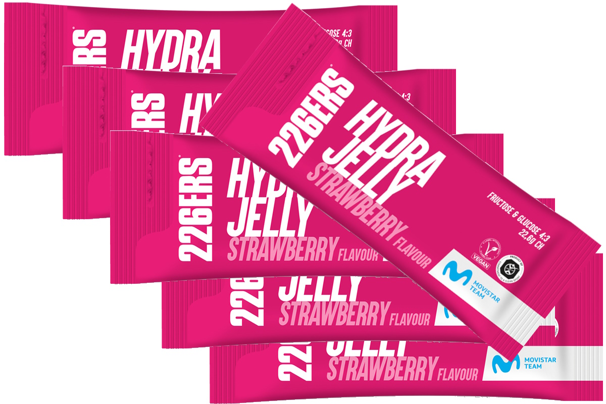 Conseguir satisfacer las necesidades energéticas durante la práctica deportiva es uno de los mayores hándicaps a los que se enfrentan los deportistas. Por ello, desde 226ERS®, nos enfocamos en facilitar la labor de obtener un aporte nutricional adecuado. Para ello, se ha desarrollado HydraJelly junto a los deportistas más exigentes, cuidadosamente formulado para lograr sabores familiares que resultan agradables y fáciles de tomar, junto con la novedosa textura de gelatina y un formato de 40gr que facilitan el transporte y la ingesta.