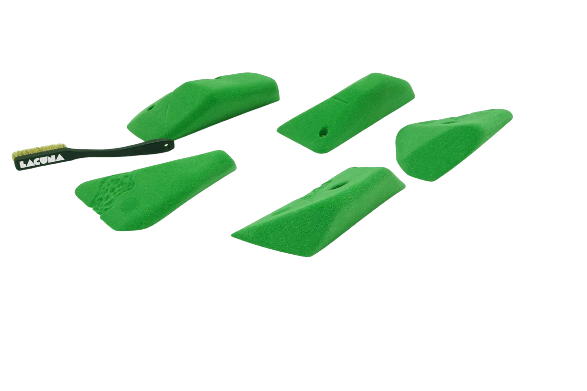 Agarres planos y regletas desde muy positivas hasta precarias. Formas inspiradas en la roca