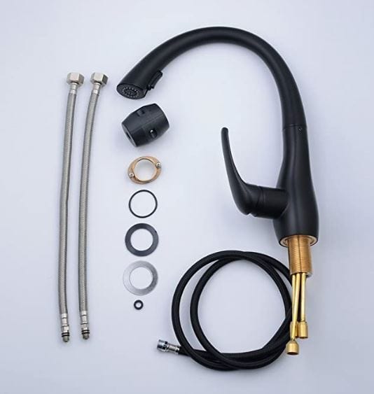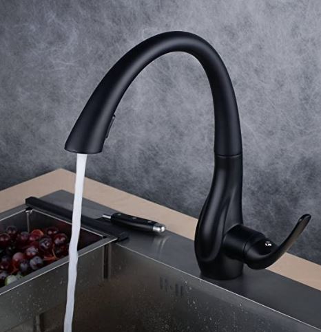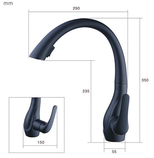 Grifo de autocaravana/ camper monomando negro agua caliente y fría con manguera extensible. Giratorio 360º. Varios modos de salida de agua.
