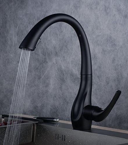 Grifo monomando negro agua caliente y fría con manguera extensible. Giratorio 360º. Varios modos de salida de agua.