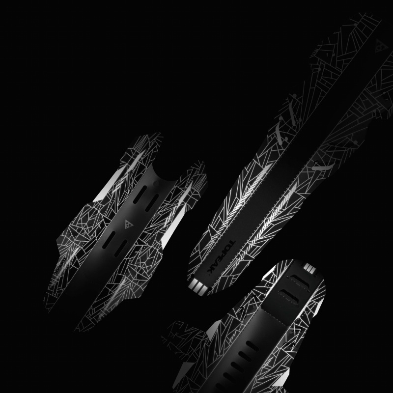 Guardabarros de polipropileno de impresión plana inspirados en origami. Ultraligero y elegante, se adhiere rápidamente al tubo del asiento para evitar acumulaciones de suciedad bajo condiciones meteorológicas adversas. El montaje es muy sencillo, simplemente retirar del paquete, perforar y doblar a lo largo de las líneas perforadas. La impresión reflectante incrementa la seguridad por la noche. Las posiciones de montaje múltiple y las correas de gancho y bucle permiten que los guardabarros se adapten a una amplia gama de bicicletas.