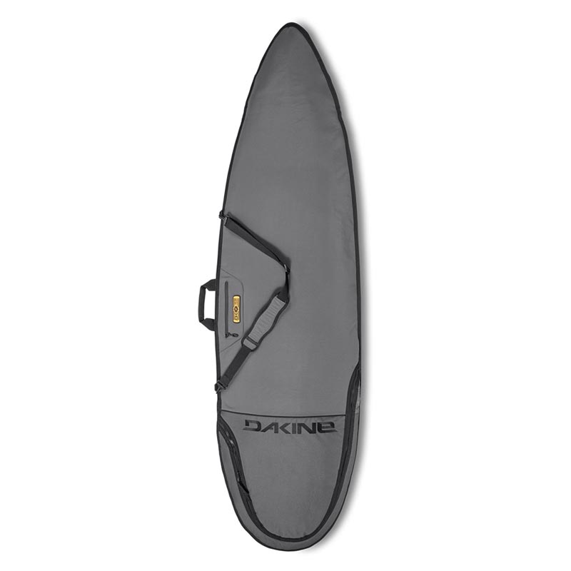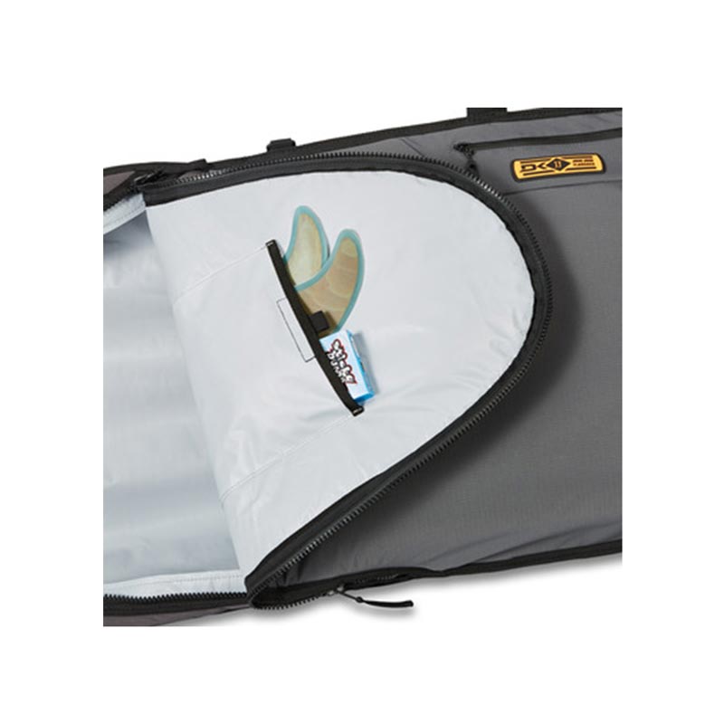 La funda de tabla de surf Dakine Mission está hecha de material de poliéster 600D ultra resistente. Para proteger la tabla de surf de impactos, rascazos y calor durante el transporte, tiene una placa base reflectante para el calor y un acolchado de espuma de 10 mm de espesor. La Dakine Mission Surfbag se puede abrir con cremallera robusta. Para que pueda guardar tablas de surf, quillas, cera y accesorios en los compartimientos designados de manera conveniente y rápida. Para facilitar su transporte, la bolsa de viaje Dakine Mission también tiene una correa para el hombro acolchada y extraíble.