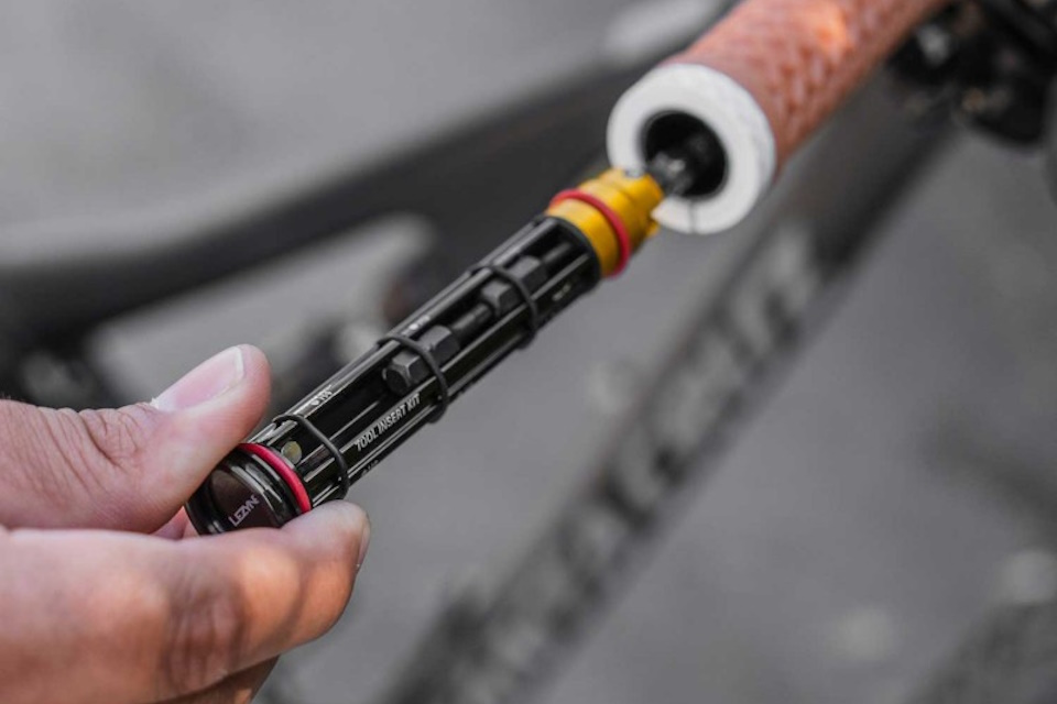 El kit de inserción de herramientas es una ingeniosa herramienta multiusos oculta que se inserta de forma segura en una amplia variedad de aberturas de manillar. Es de fácil acceso para reparaciones rápidas y viene en tres tamaños: kit pequeño (5 brocas), kit mediano (8 brocas) y kit grande (11 brocas). Cada kit está fabricado con aluminio mecanizado duradero y cuenta con brocas de acero endurecido de primera calidad.
