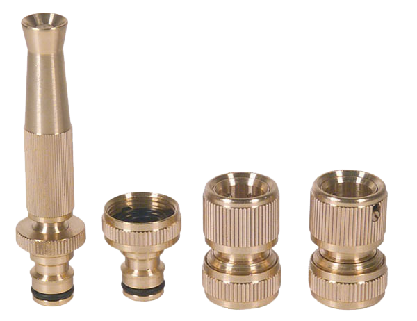 Kit de 4 piezas de latón: Lanza, conectores rápidos manguera, conector rápido grifo.