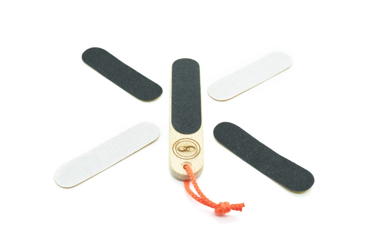 De madera curva para una mejor adaptación y eficacia al limar la piel de nuestros dedos/manos.