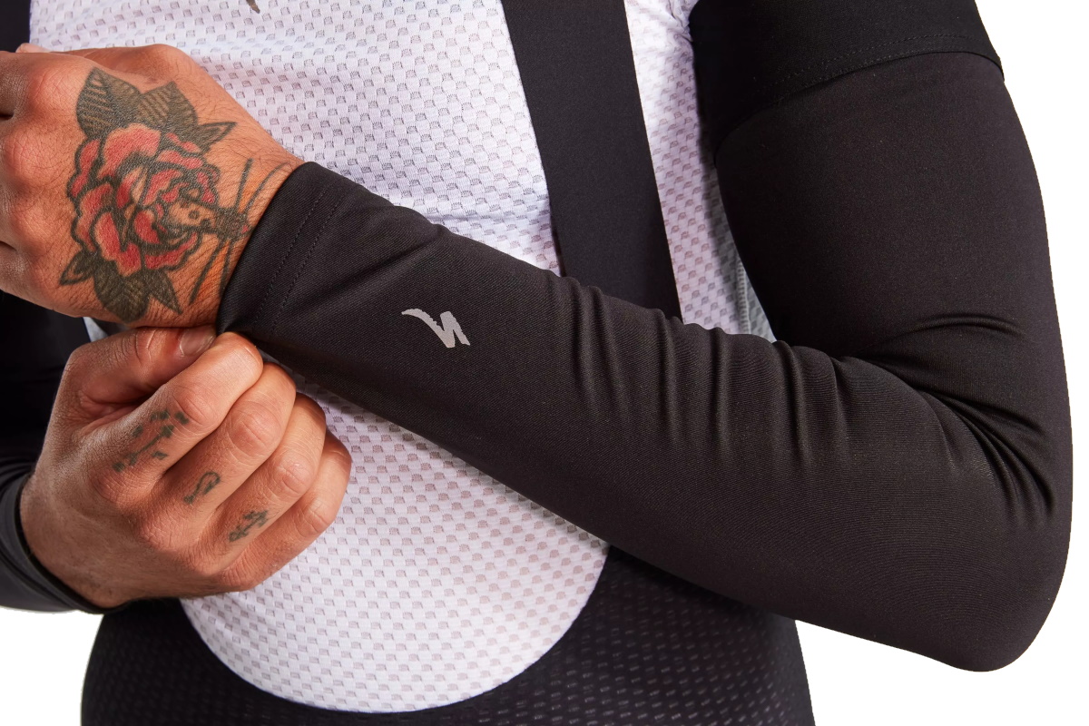 Cuando la madre naturaleza abre el grifo, los manguitos Race Rain están aquí para mantenerte abrigado y seco. Son totalmente resistentes al viento y al agua, y se combinan perfectamente con el maillot de manga corta SL Pro Rain para una protección completa.