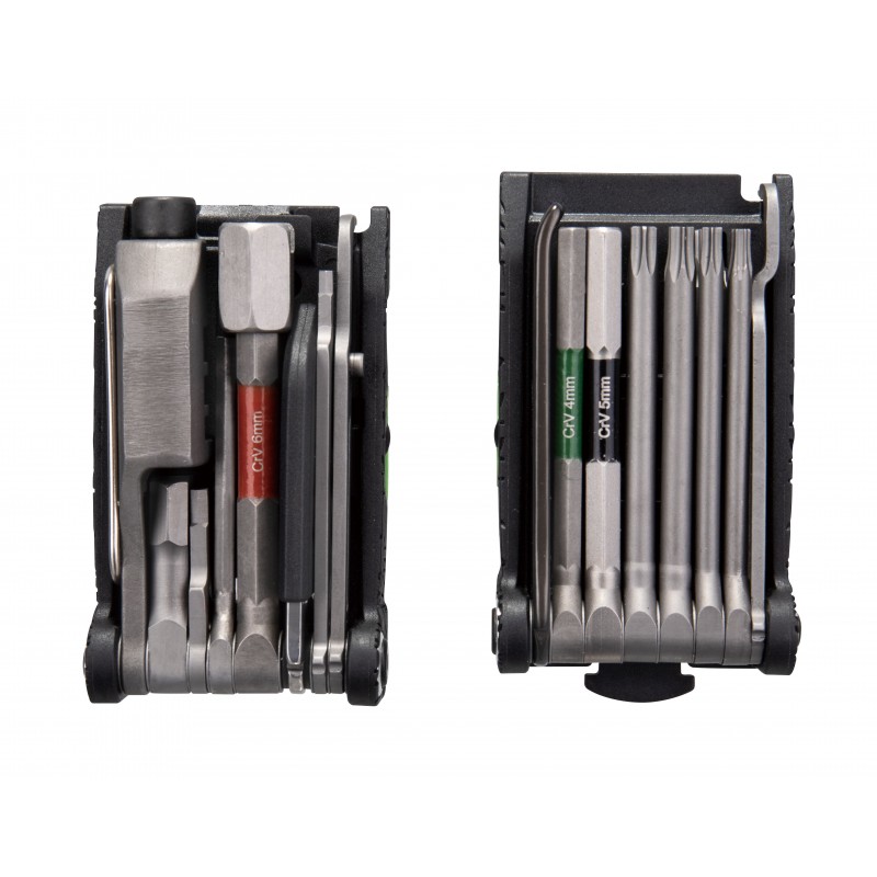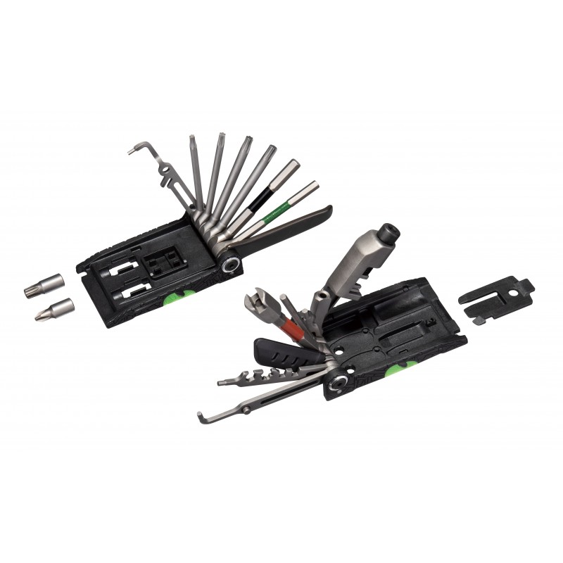 Multiherramienta de 34 funciones de calidad profesional. El diseño de dos piezas permite un mejor acceso a todas las herramientas y facilita el uso de éstas. Incluye herramientas de auto-ajuste y una bolsa de nailon.