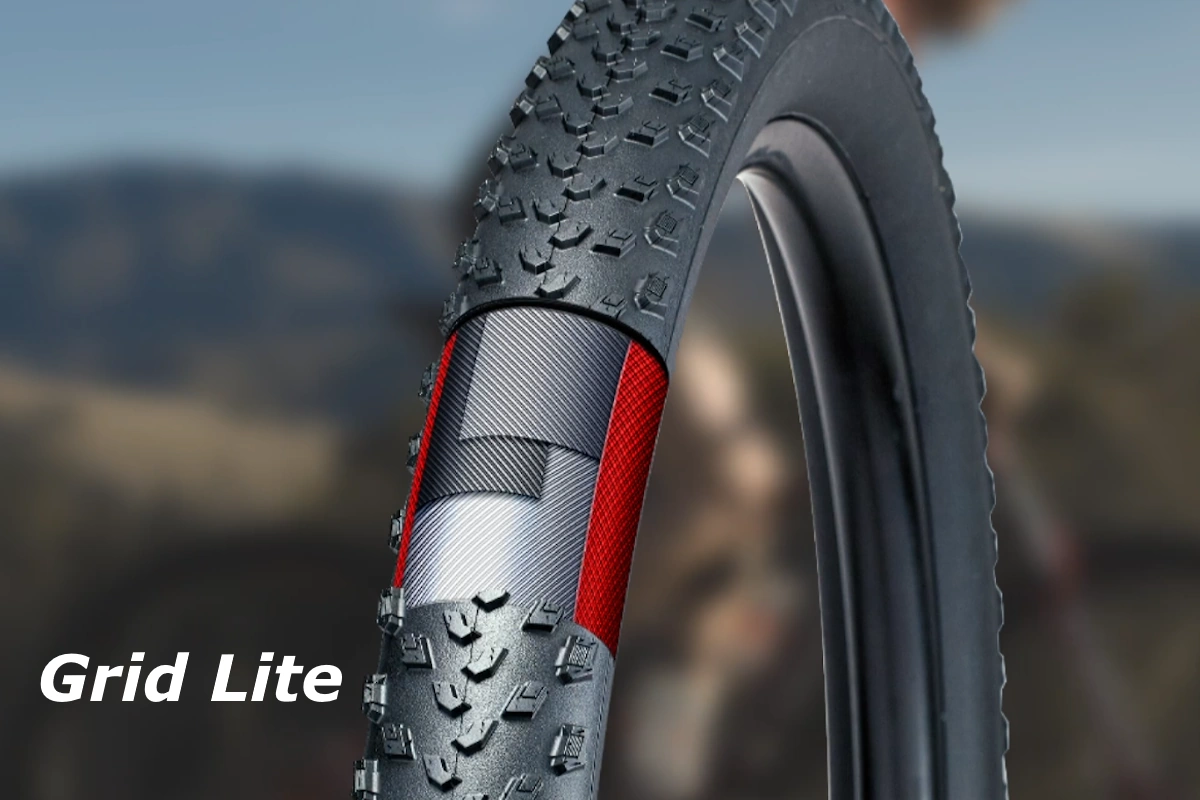 El compuesto dual GRIPTON T5/T7 proporciona velocidad superior en rectas y agarre seguro en curvas, mientras que la carcasa Grid Lite de 60TPI con protección de pared lateral asegura durabilidad y resistencia ante pinchazos.