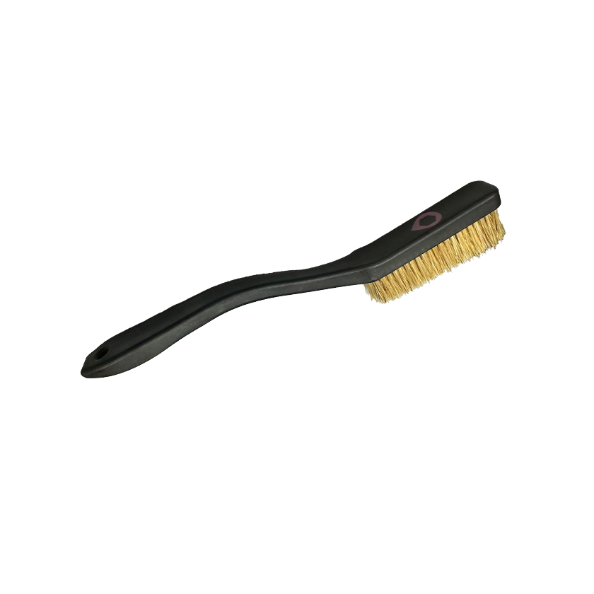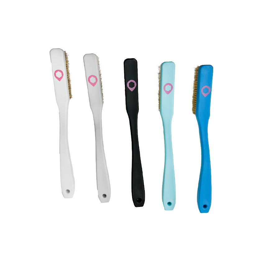 Cepillo de mano, con mango de plástico y cerdas naturales.