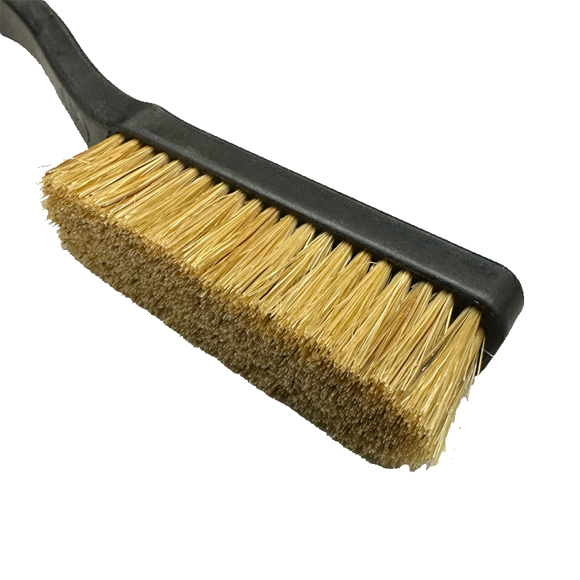 Cepillo de mano, con mango de plástico y cerdas naturales.
