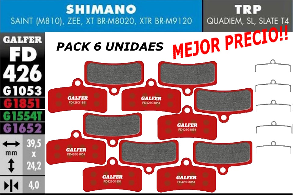 Pack Ahorro 6 Pares – Pastillas de freno Galfer FD426 – G1851 – Shimano – Tektro – TRP