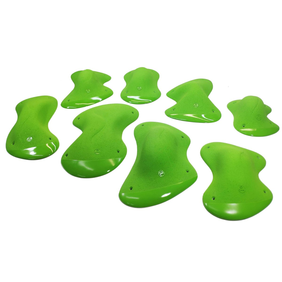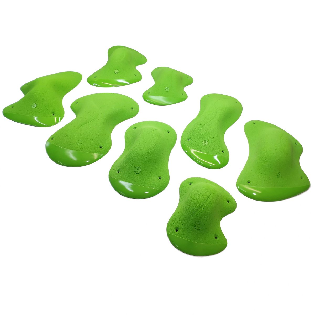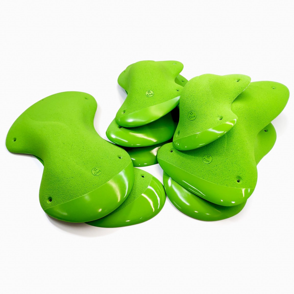 Uno de los sets más característicos de Crux. Formas romas e incómodas de pinzar, anchas. Funcionan muy bien en plafones con poca inclinación, para equipar bloques técnicos y de equilibrio. La doble textura en las puntas de las presas ofrecen a los equipadores la posibilidad de crear movimientos más obligados y concretos en alguna sección.