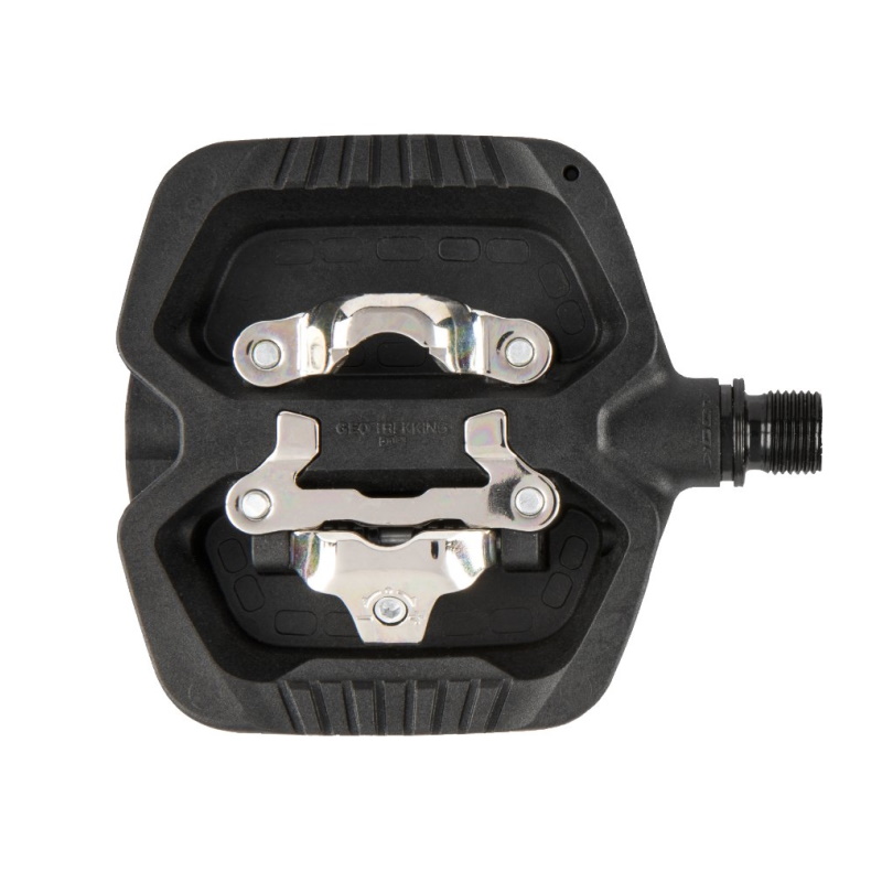 Los GEO TREKKING GRIP son pedales urbanos. Por una cara, un sistema SPD compatible y, por otra, una plataforma de elastómero que ofrece un pedaleo seguro en cualquier situación. Sin necesidad de cambiar los pedales cuando te dispones a salir con prisa: el GEO TREKKING GRIP puede hacerlo todo.