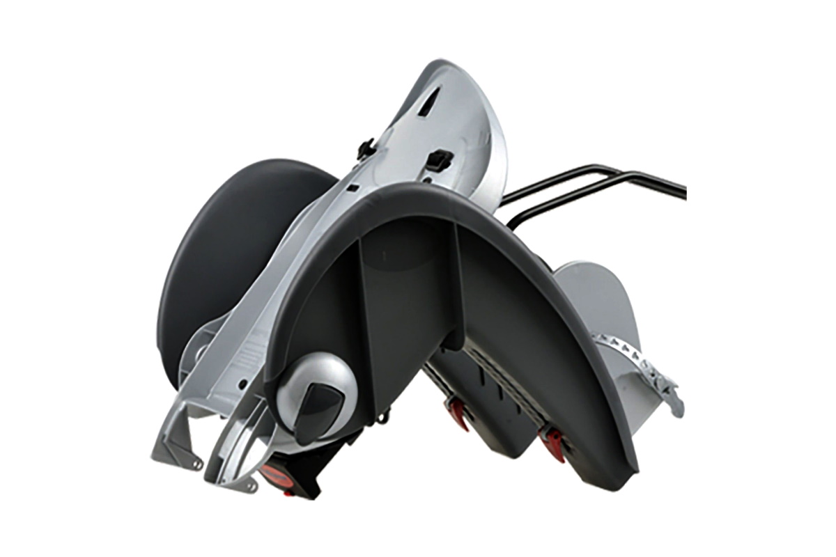 La abrazadera exclusiva del Wallaby permite colocar/retirar el portabebe de la bicicleta en segundos presionando el botón de desbloqueo.