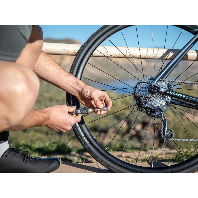 Con un simple giro se adapta a las series Ninja Master. Accesorio perfecto para arreglar pinchazos rápida y cómodamente. Incluye dos cartuchos de CO2 de 16g.