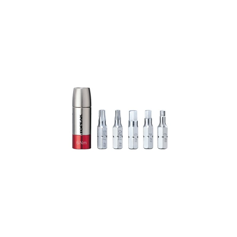 Este set de herramientas incluye un Torq Socket con valor de 6Nm que funciona con cualquier herramienta que disponga de una llave Allen de 5 mm. Tiene un límite para no sobrepasar los valores recomendados y así no dañar ninguno de los tornillos, componentes o partes de carbono.