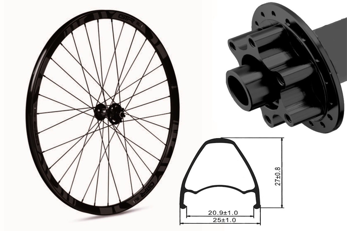 Rueda delantera aluminio MTB GTR SL20 27,5″ Gris Disc 6 Tornillos Boost