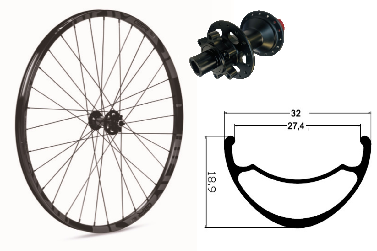 -Llanta de aluminio tubeless ready, 27mm de interior, 32mm de exterior y 19mm de altura