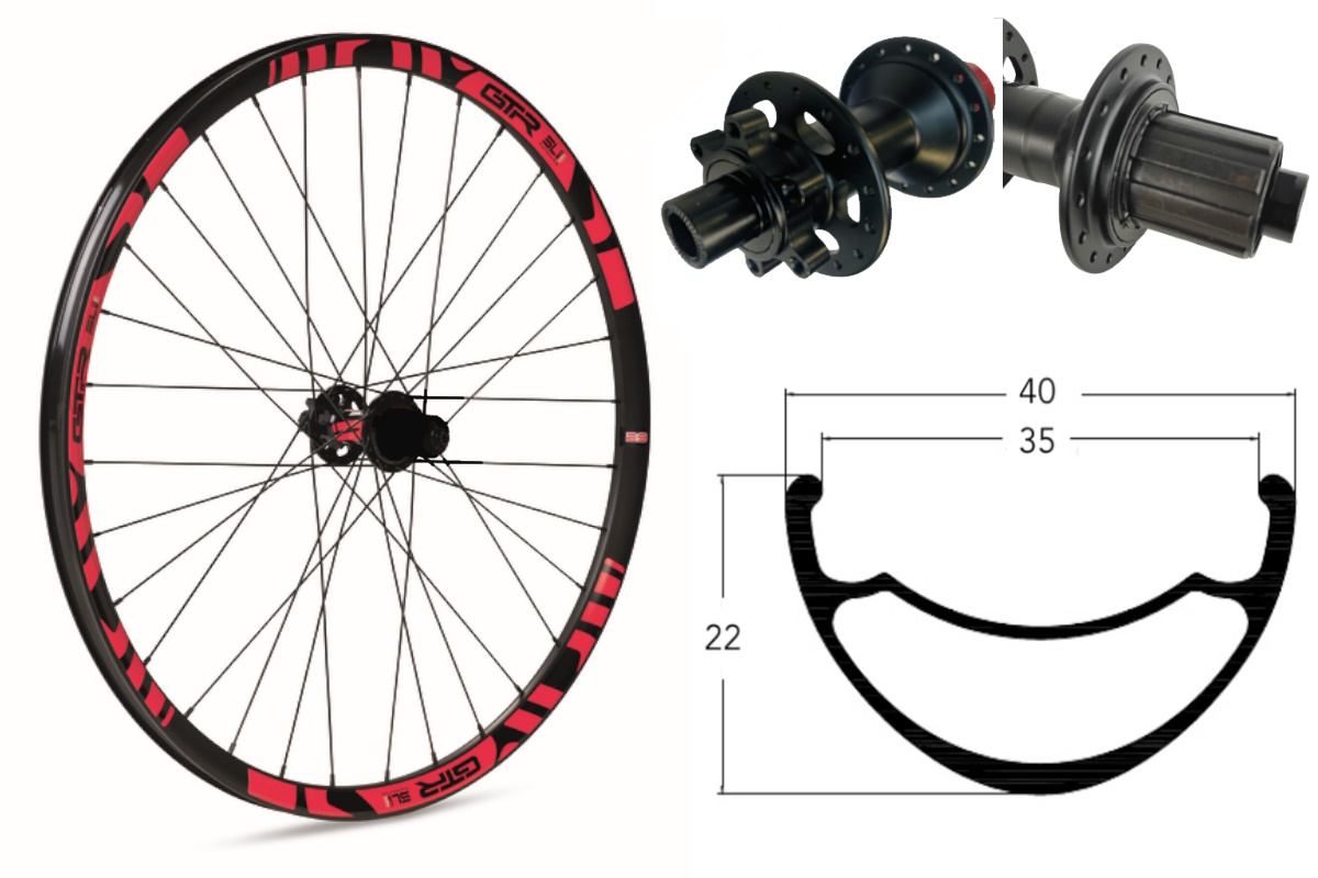 Rueda trasera Reforzada para E-MTB GTR SL35 27,5″ Rojo Disc 6 Tornillos Boost Shimano