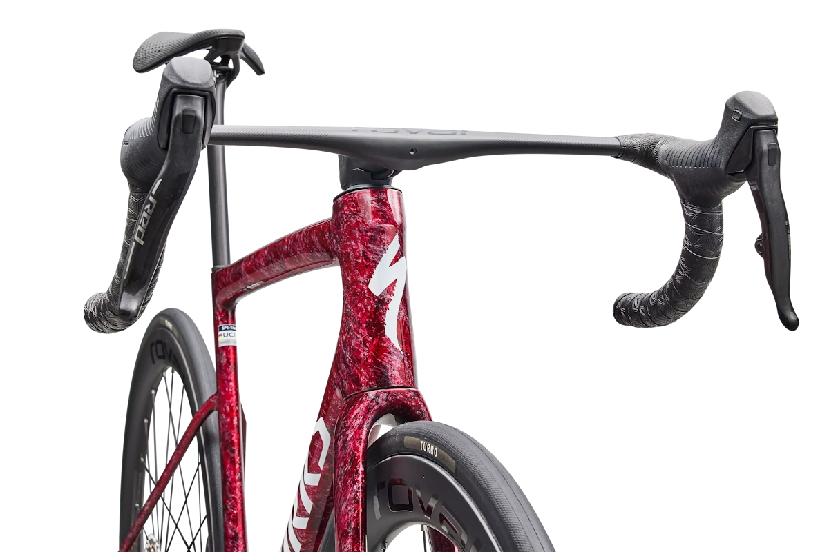 Beneficio: agarre seguro y control en sprint, lluvia o fatiga. - Abrazadera del sillín: Tarmac integrated wedge