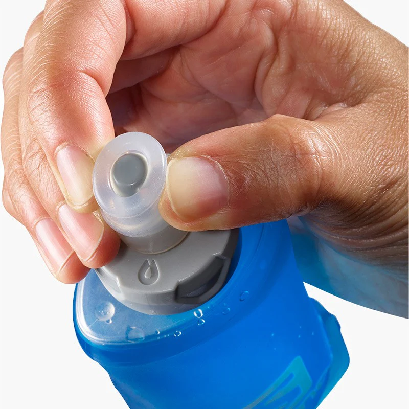 El SOFT FLASK 150ml / 5oz se comprime mientras bebes para evitar que el agua se agite en el interior. Reduce el esfuerzo de succión. La válvula solo gotea cuando la muerdes.