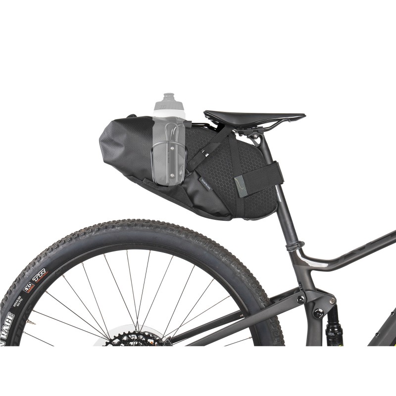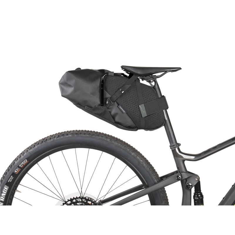 Soporte de sillín anti-balanceo para mantener rígida la bolsa trasera y así conseguir una conducción equilibrada. Fabricado con una aleación de aluminio y acero inoxidable, lo convierte en un soporte robusto y muy duradero. Las barras laterales pueden llevar dos portabidones adicionales
