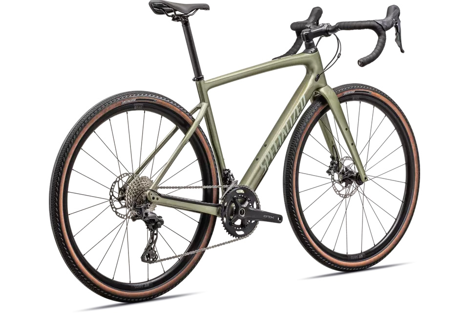 The Diverge Expert is built with the perfect mix of SRAM’s Rival, GX, and NX components for fast, efficient shifting with an 11-50 cassette to ensure you have the gearing to tackle any ride. The bike rolls on the Roval Terra C wheels with 42mm Pathfinder Pro tires. Adventure Gear alloy handlebars, a Roval Terra carbon seatpost, and a Power Expert saddle complete.