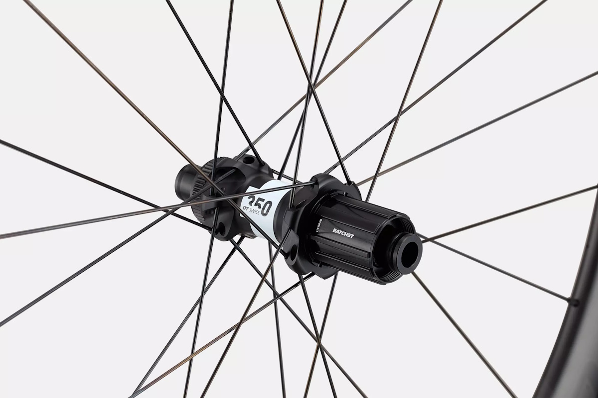 - Tecnología: Llantas de carbono clincher con gancho, compatibles tubeless y mousse, bujes DT Swiss 350 EXP con sistema de trinquete de 36 dientes.