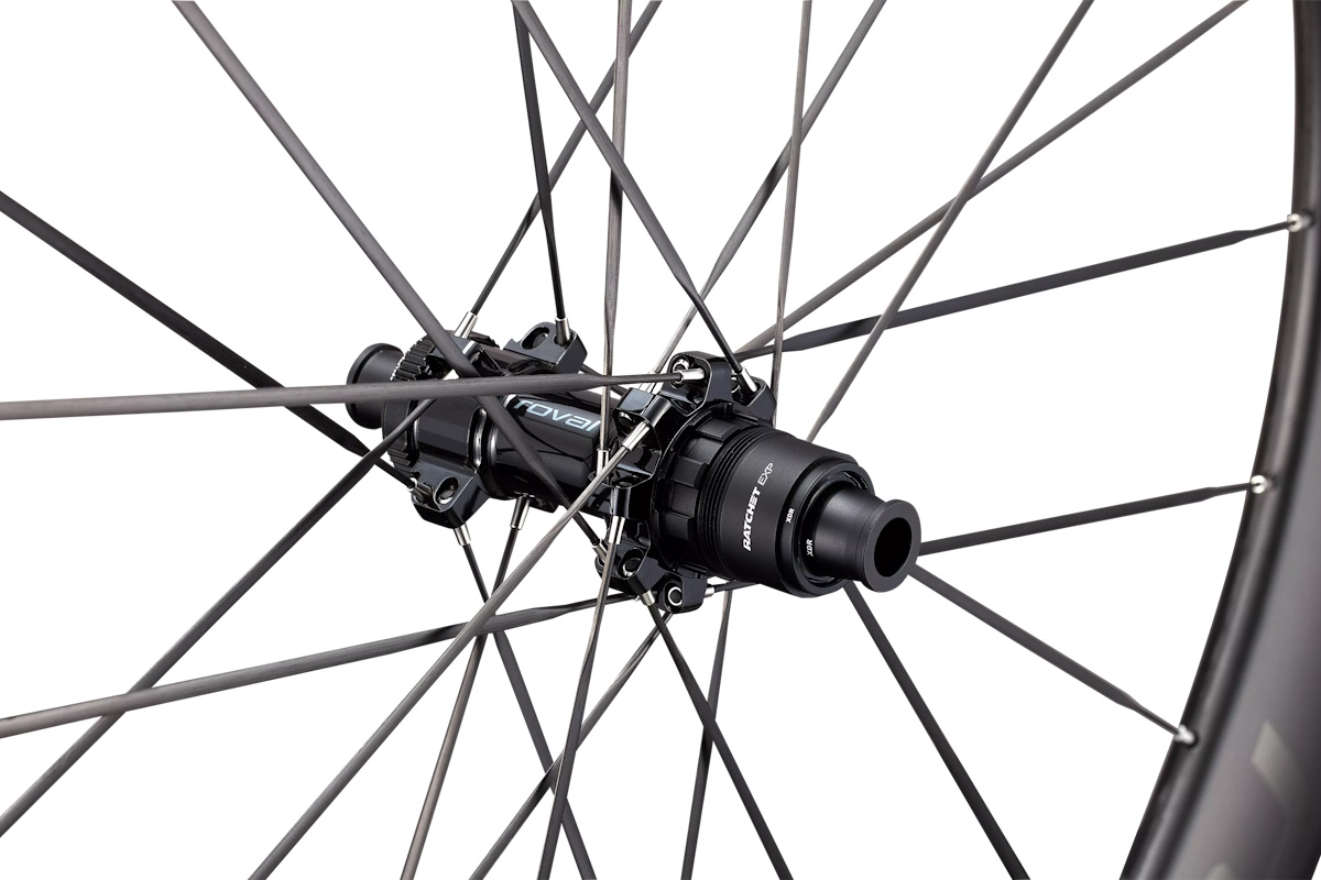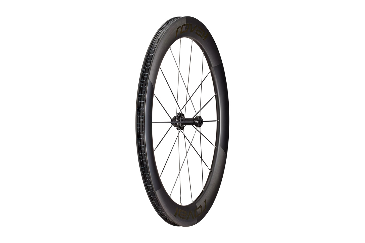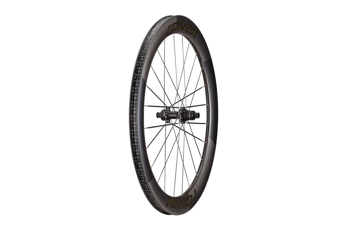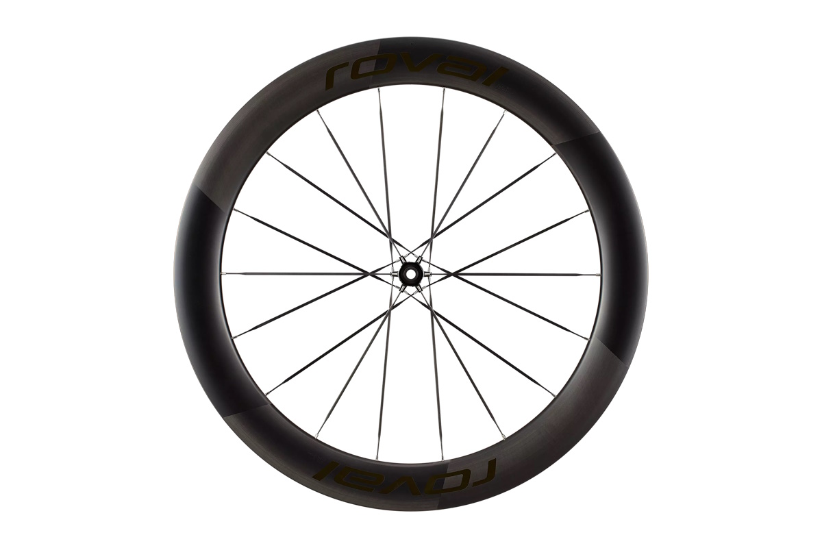 - Tecnología: Llantas de carbono clincher con gancho, compatibles tubeless y mousse, bujes Roval con componentes internos DT Swiss 180 EXP y rodamientos cerámicos DT Sinc.