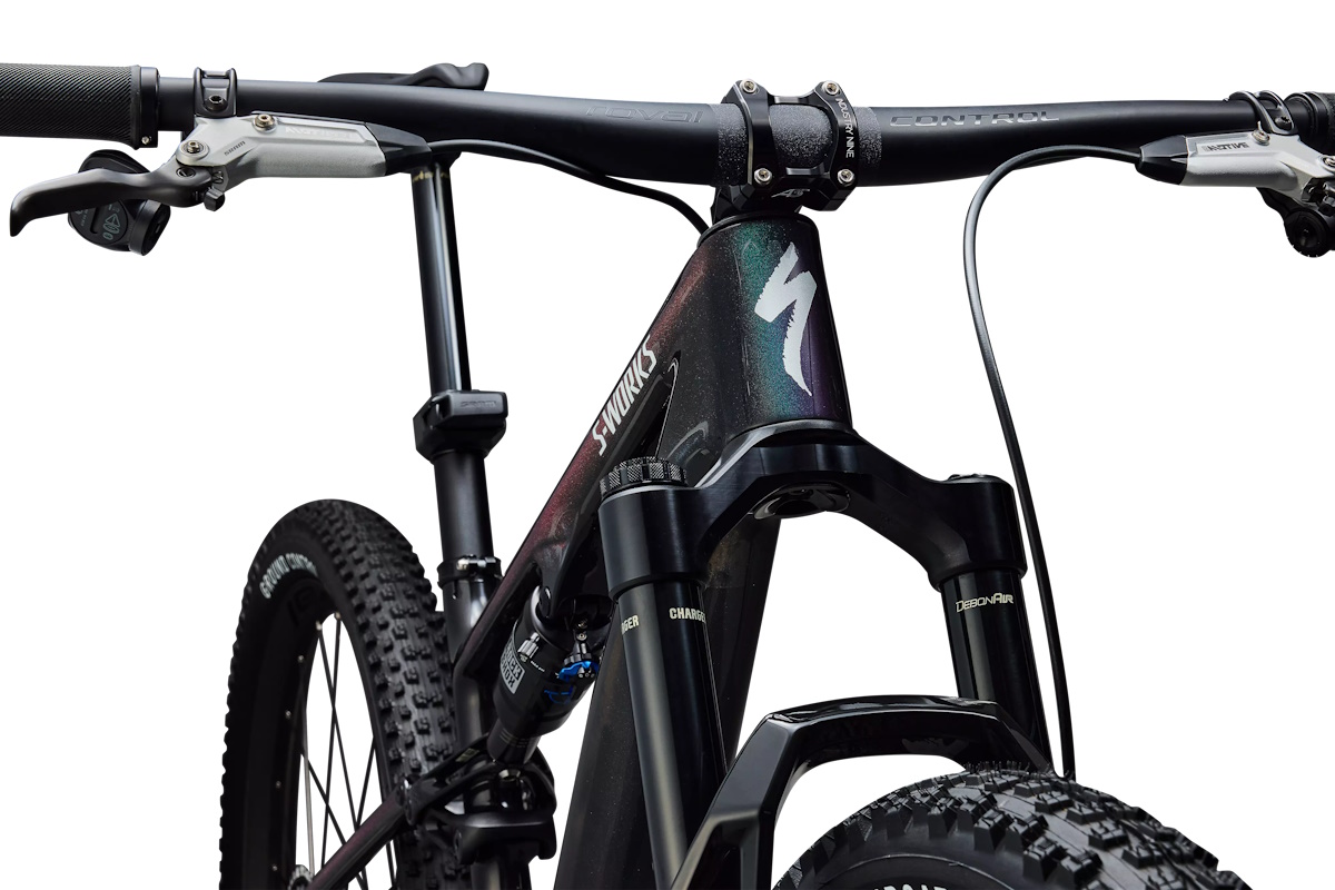 Cuadro: S-Works FACT 12m Carbon, geometría XC progresiva, almacenamiento SWAT 4.0, BB roscado, 120 mm de recorrido, enrutamiento interno, optimizado para transmisión electrónica