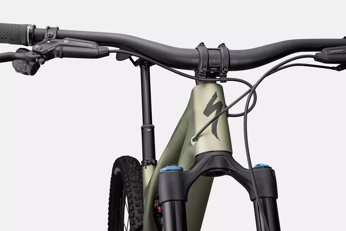 - Chasis y parte trasera de carbono FACT 11m, diseño asimétrico, geometría Trail de 29/27,5″, integración de puerta SWAT™, ajuste del ángulo del tubo de dirección, ajuste del pedalier con pivote horst, pedalier roscado, guiado interno de cables completamente cerrado, punteras de 12×148 mm, pivotes con rodamientos de cartucho sellados , patilla de cambio reemplazable, 150 mm de recorrido