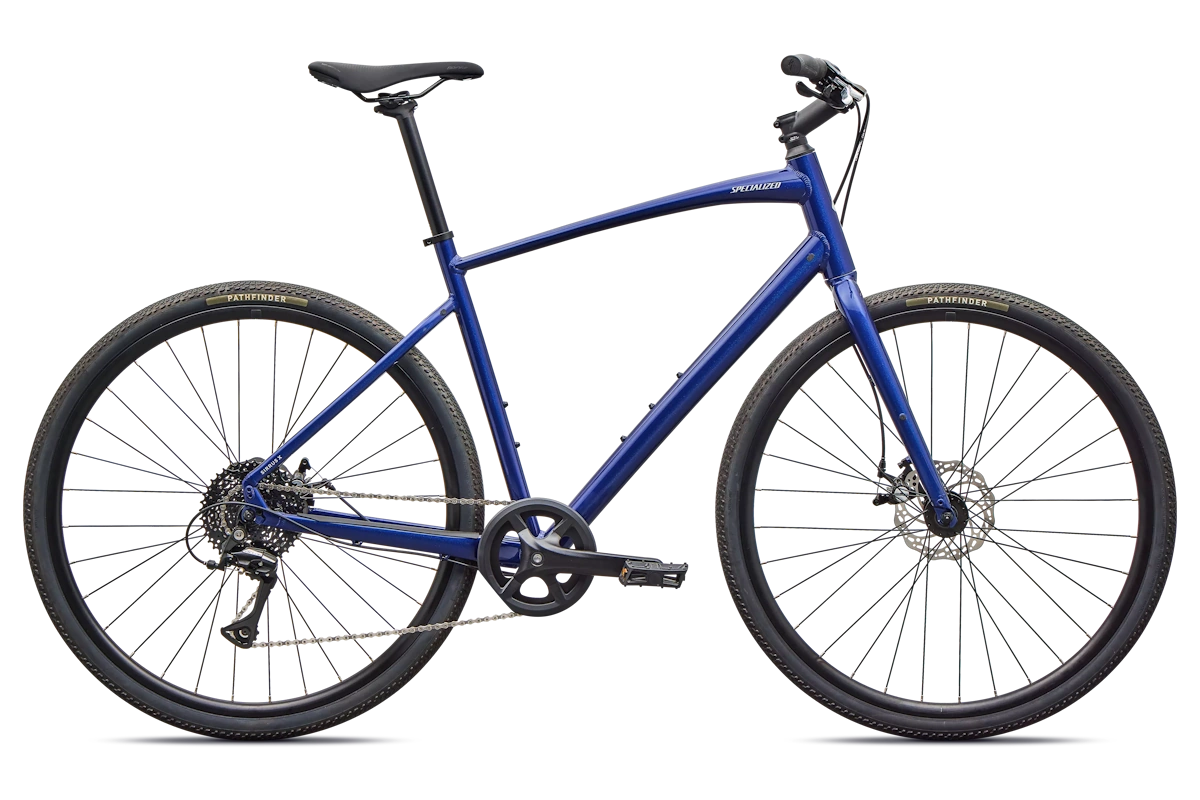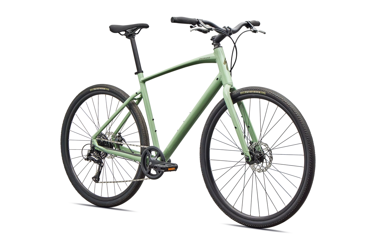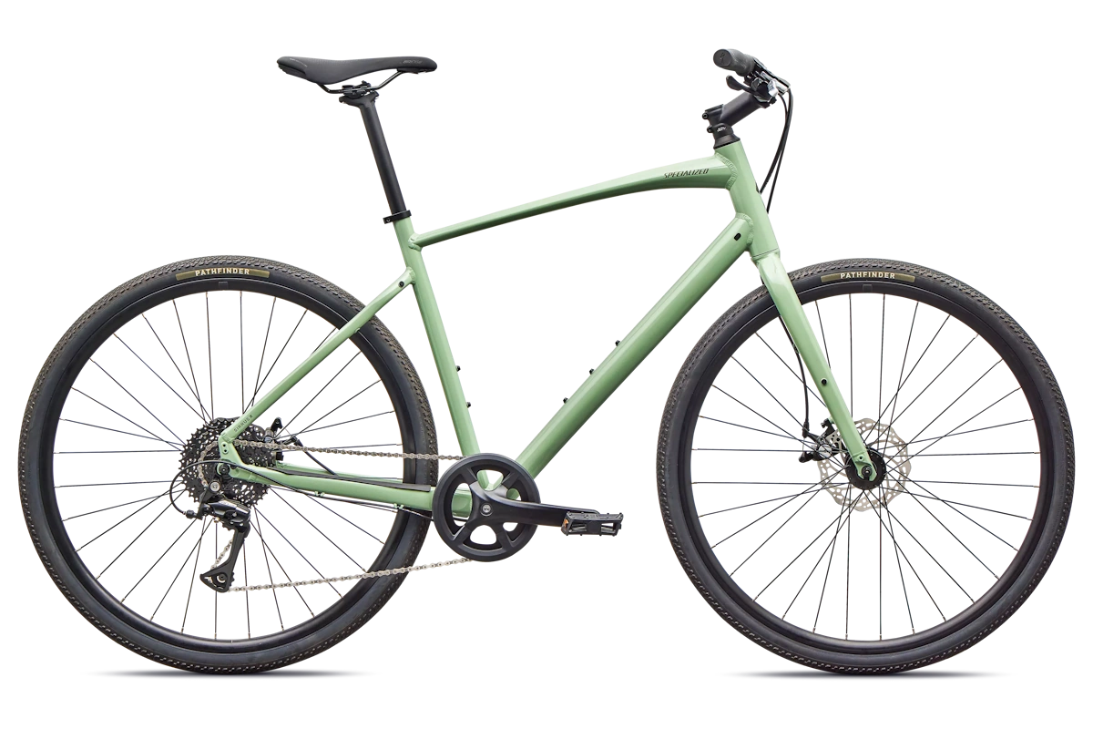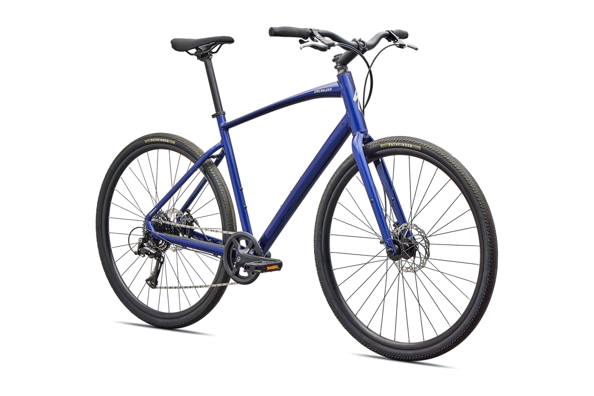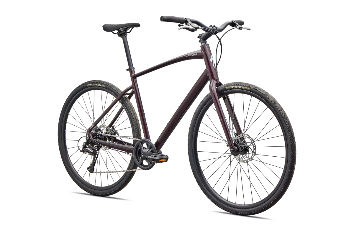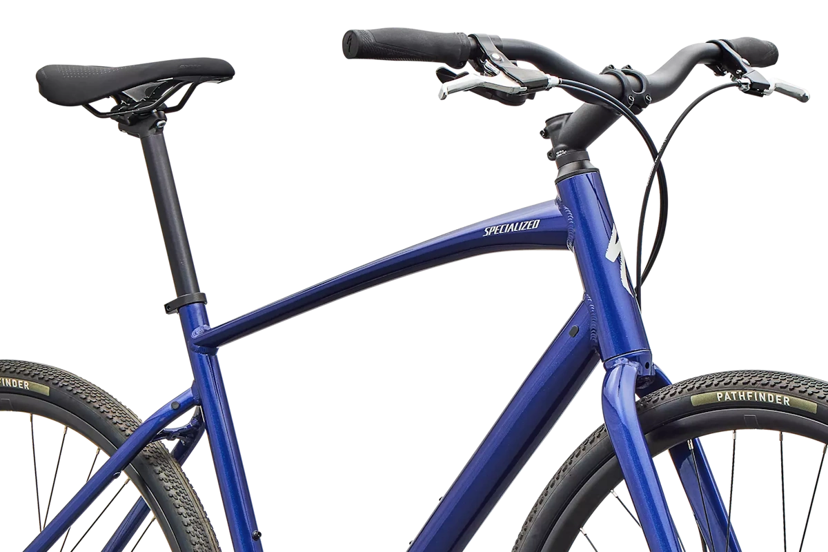 - Cuadro: Specialized A1 Premium Aluminum, Fitness Geometry, tubería butted, cableado interno, flat-mount disc, quick-release, anclajes Plug + Play para portabultos/guardabarros