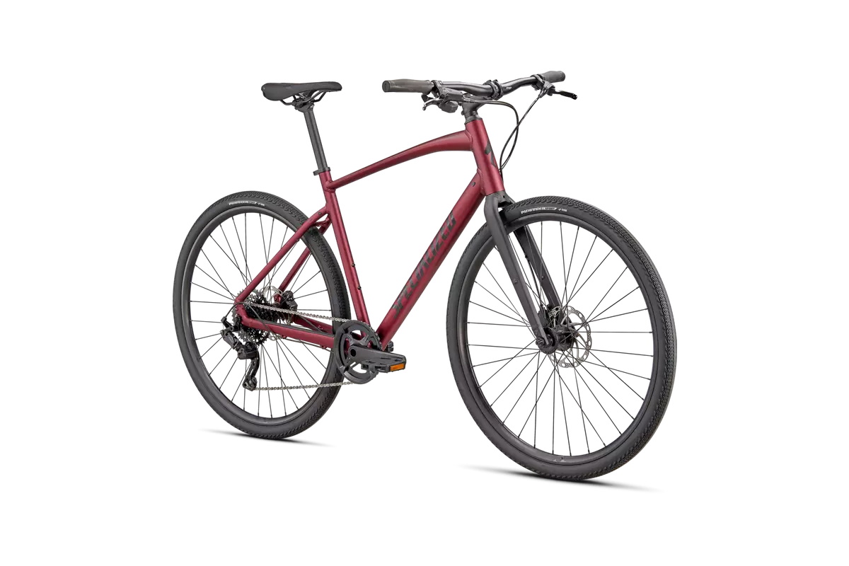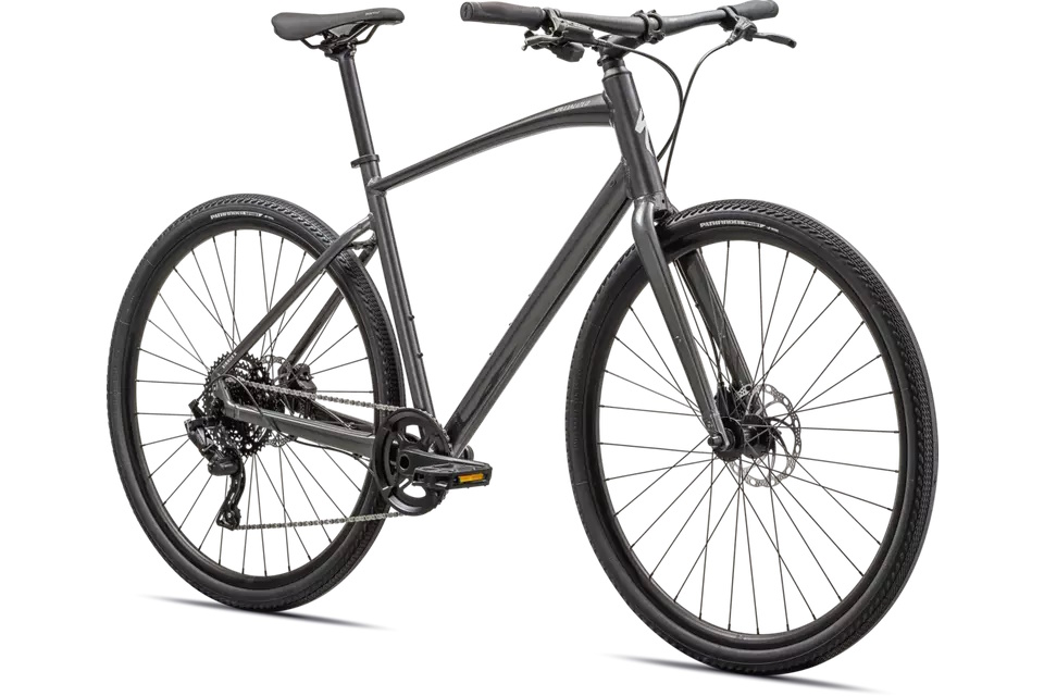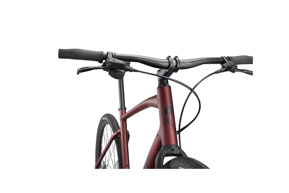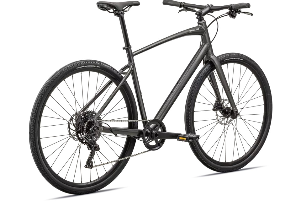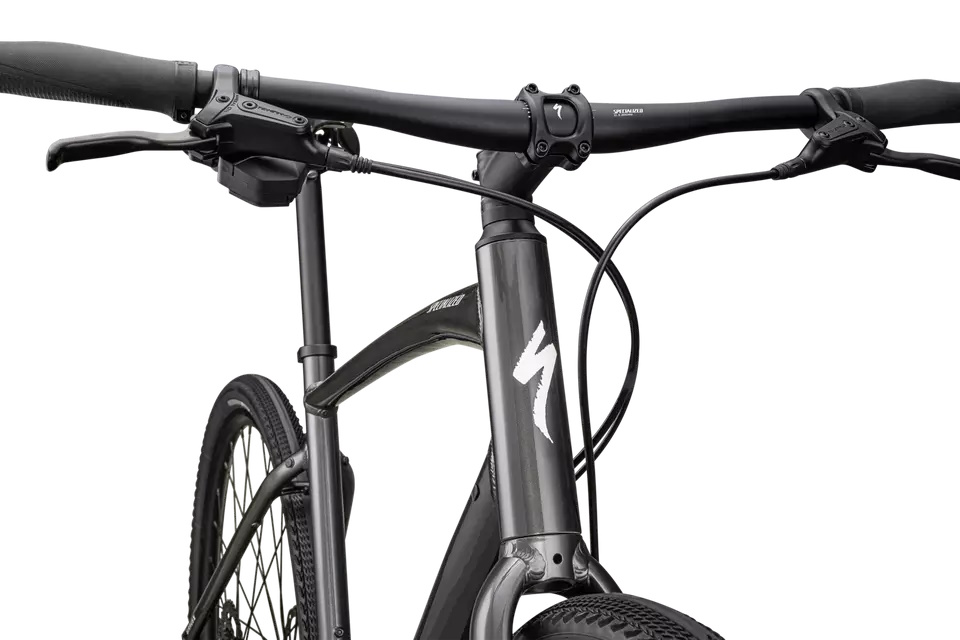 - Cuadro: Specialized A1 Premium Aluminum, Fitness Geometry, tubería butted, cableado interno, flat-mount disc, quick-release, anclajes Plug + Play (portabultos/guardabarros)