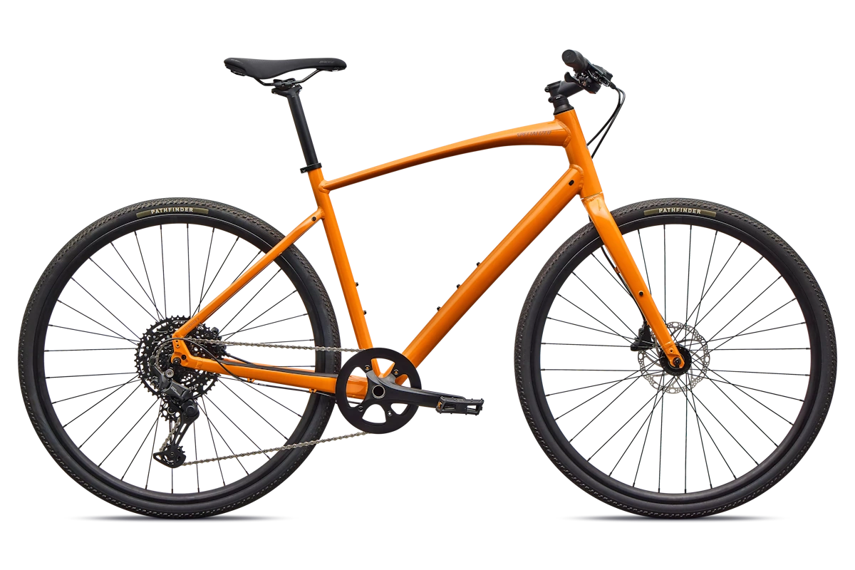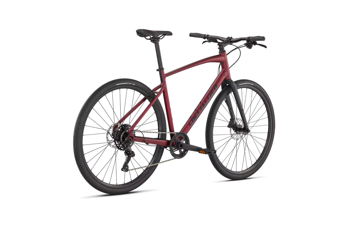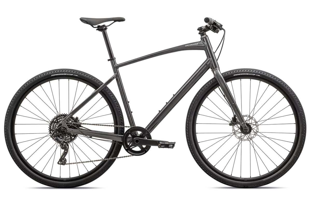 - Cuadro: Specialized A1 Premium Aluminum, Fitness Geometry, tubería butted, cableado interno, flat-mount disc, quick-release, anclajes Plug + Play (portabultos/guardabarros)