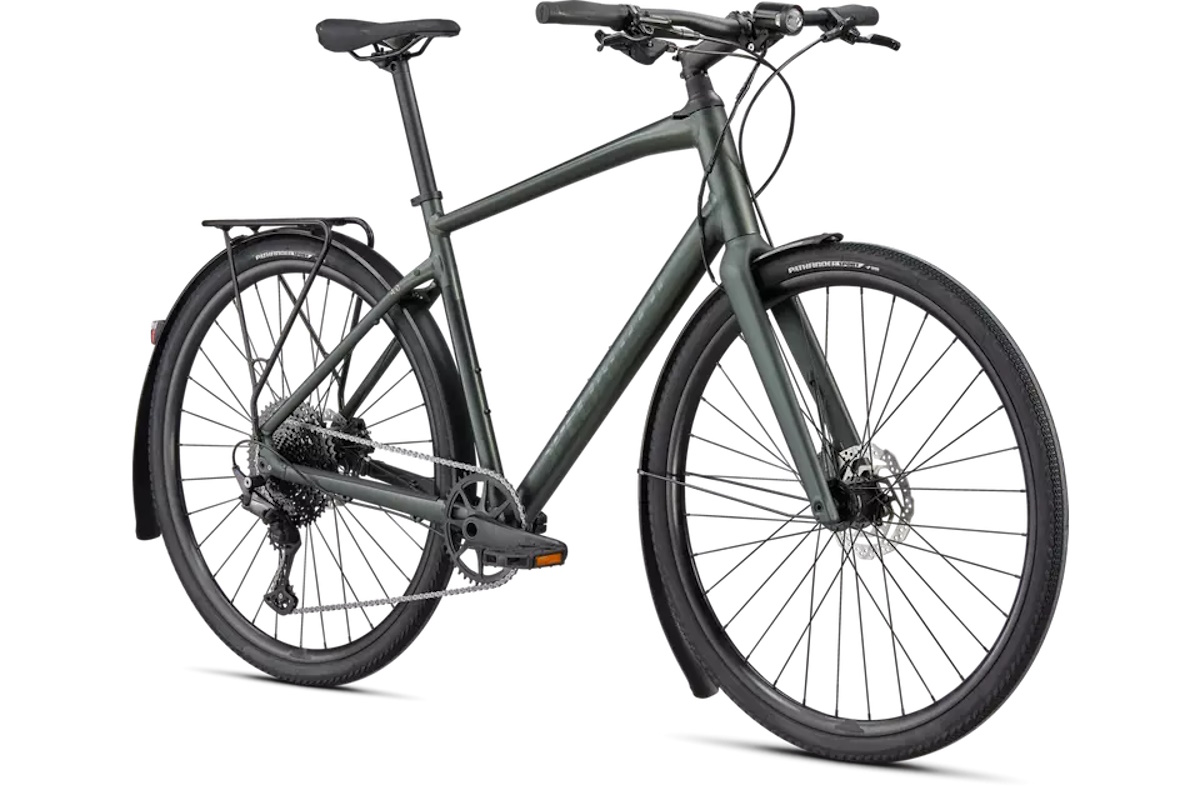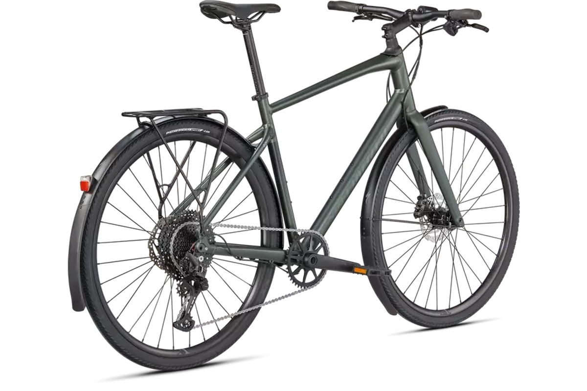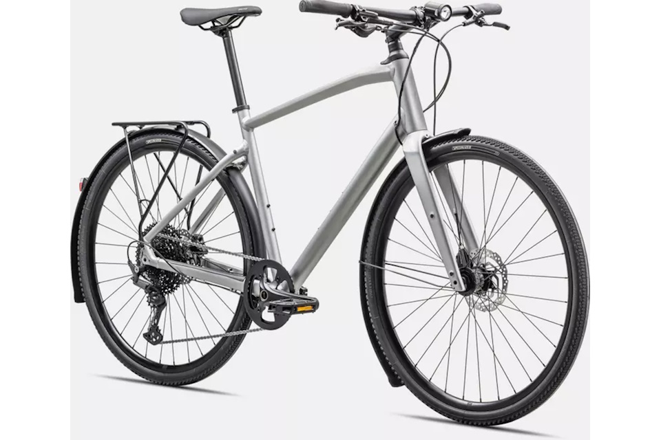 • Cuadro: Specialized A1SL Premium Aluminum, Fitness Geometry, tubería butted, cableado interno, flat-mount disc, quick-release, anclajes Plug + Play (portabultos/guardabarros)