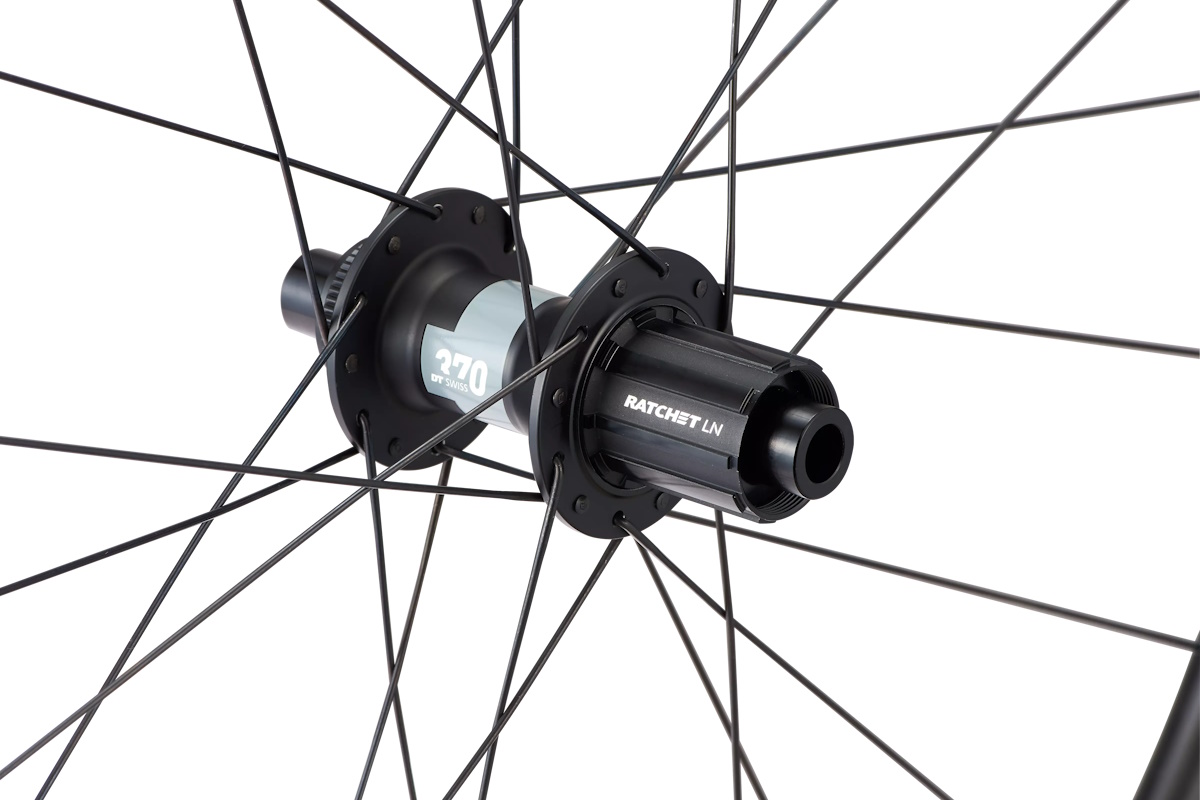 • Optimización de la inercia: Radios DT Swiss Competition Race J-bend, bujes DT Swiss 370 con sistema Ratchet LN de 18 dientes (20°), respuesta eficiente y durabilidad