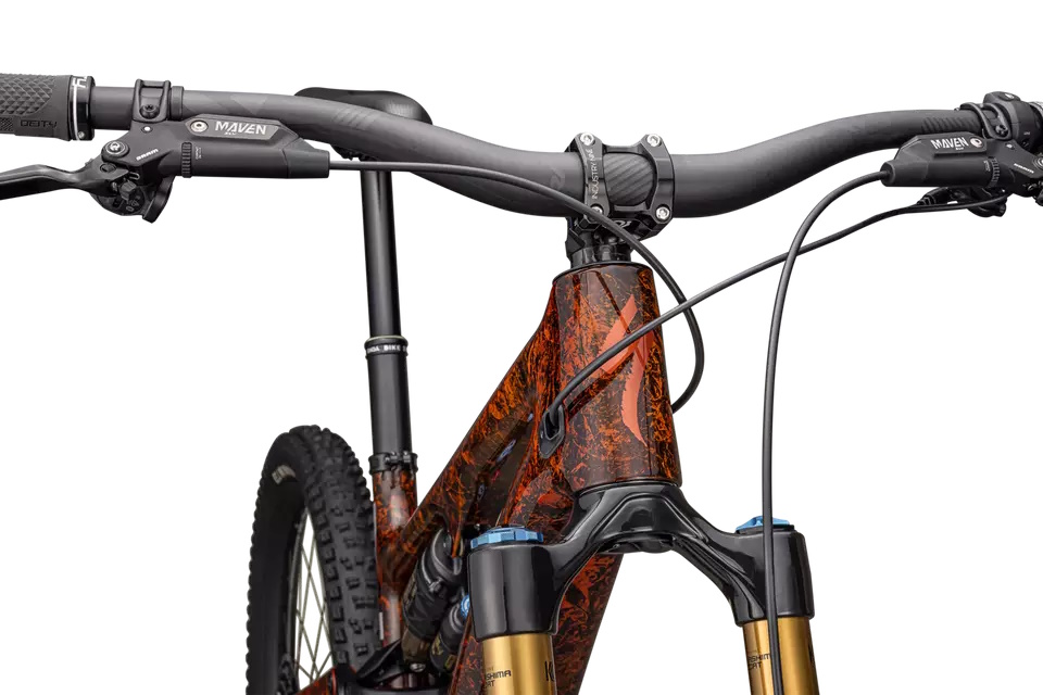 - Horquilla FOX 36 Factory Kashima: 160 mm de recorrido con ajuste de alta y baja velocidad para compresión y rebote, ideal para descensos técnicos.