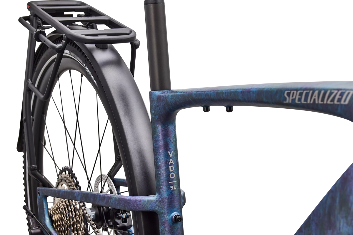 La versión Vado SL 2 6.0 Carbon (sin EQ) mantiene la base técnica, pero no incluye portaequipajes ni guardabarros (y puede variar el equipamiento asociado según montaje final de mercado).