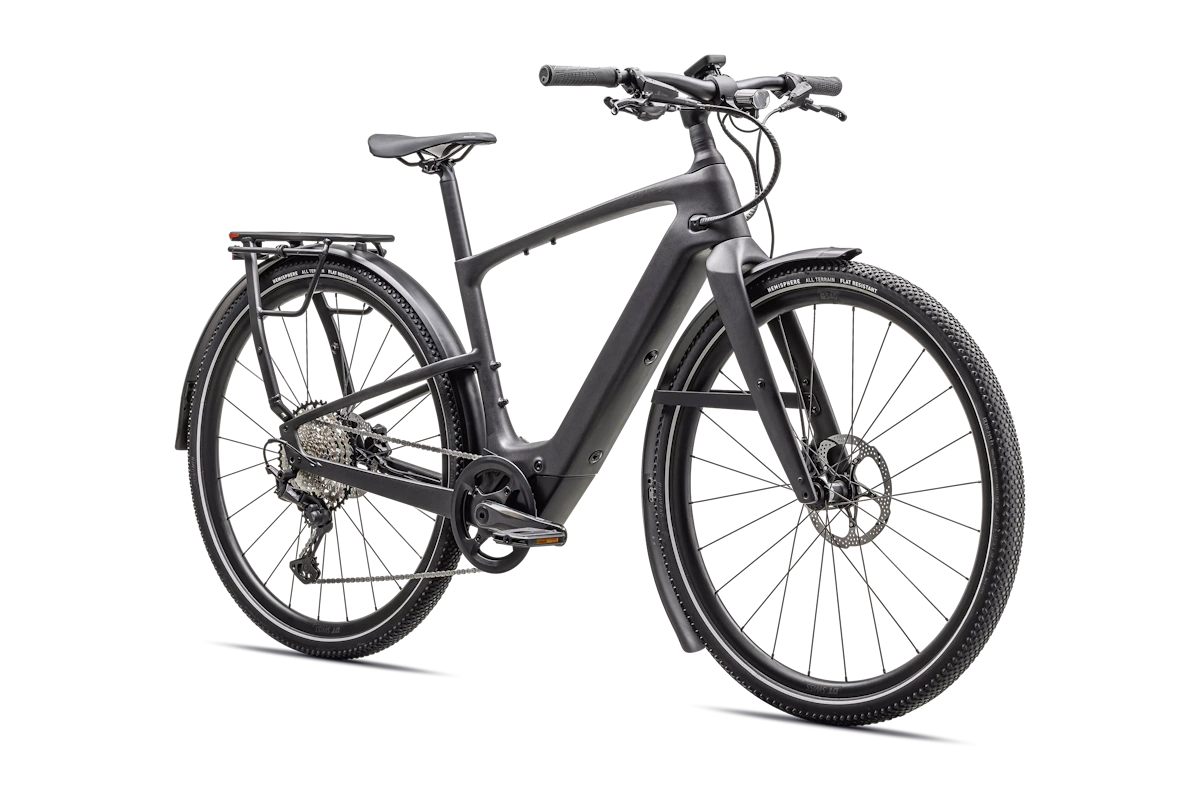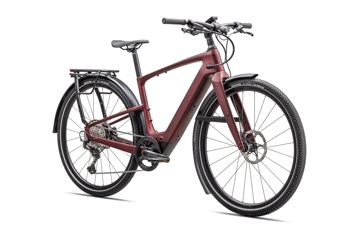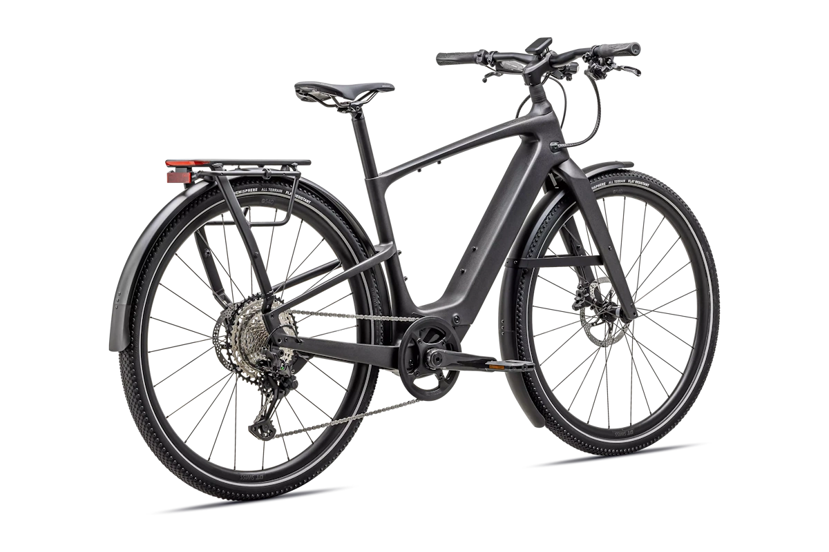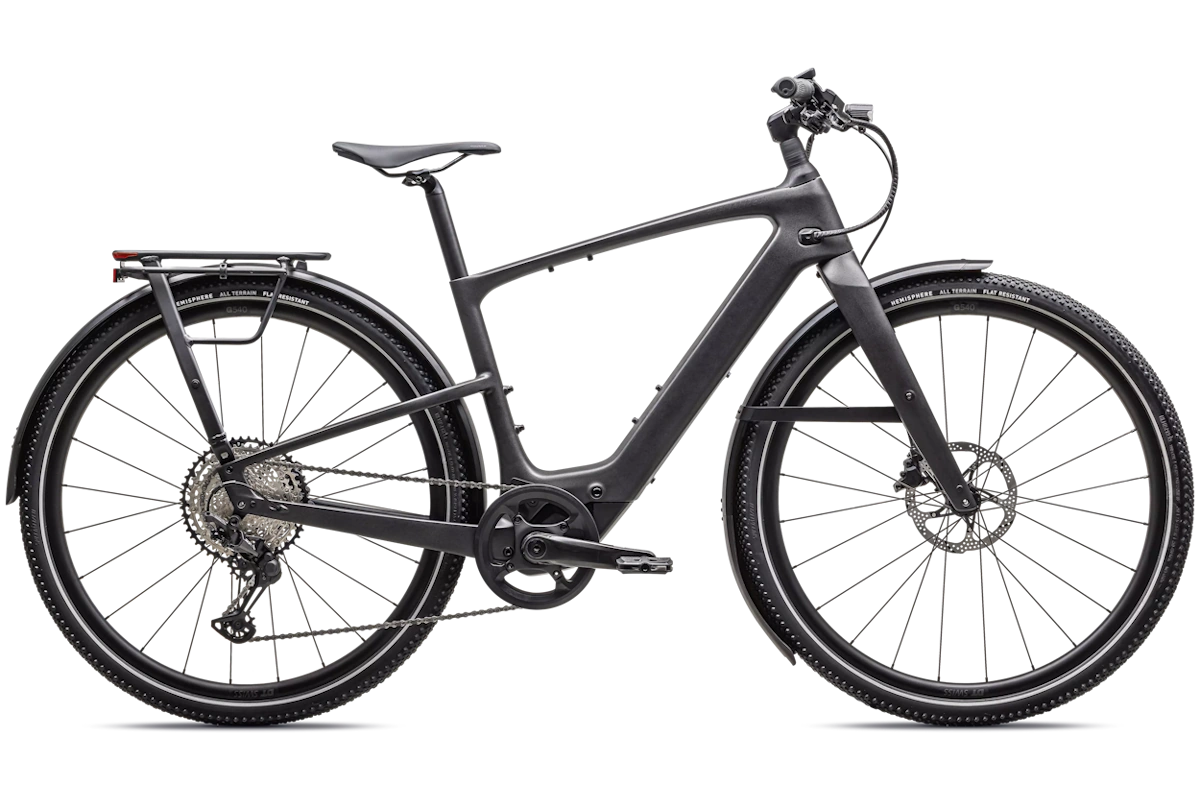 - Neumáticos: Specialized Hemisphere 700x47c, protección antipinchazos + flancos reflectantes → confort, agarre y visibilidad lateral.